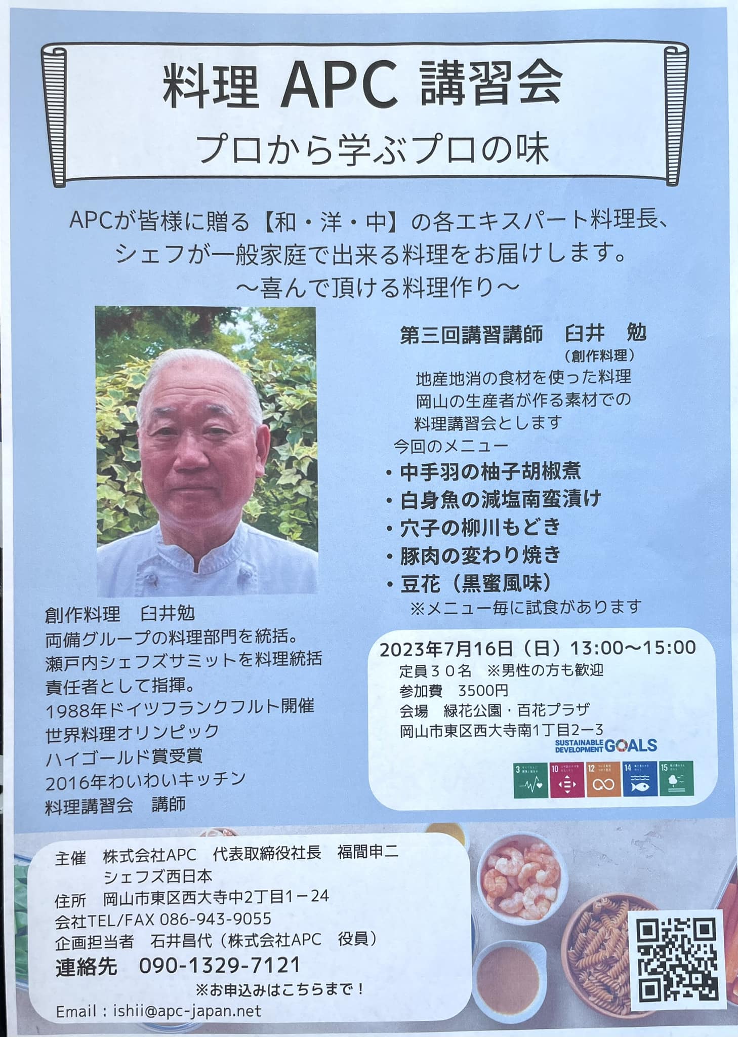 瀬戸内シェフズサミットの中心の方々であり、其々の分野でご活躍のシェフ達が順繰りで講習会講師を開催予定です。